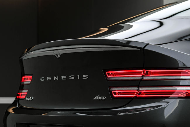 어쨌거나 G80는 트렁크의 골프백 4개 용적을 포기하면서 한 붓으로 그린 듯한 유려한 실루엣을 얻었다. 대형 세단이지만 후측면 처리는 쿠페에 가깝다. 공간 손실을 감수하고 미적 완성을 택했다. G80 디자인에서 수려한 기운을 얻었다면 절제의 미덕 덕분이다. 벌써 3세대가 되는 G80는 기존 대비 전폭을 35mm 넓히고 전고를 15mm 낮춰 후륜구동 세단이 갖출 수 있는 가장 세련된 비율과 당당한 모습을 구현했다.