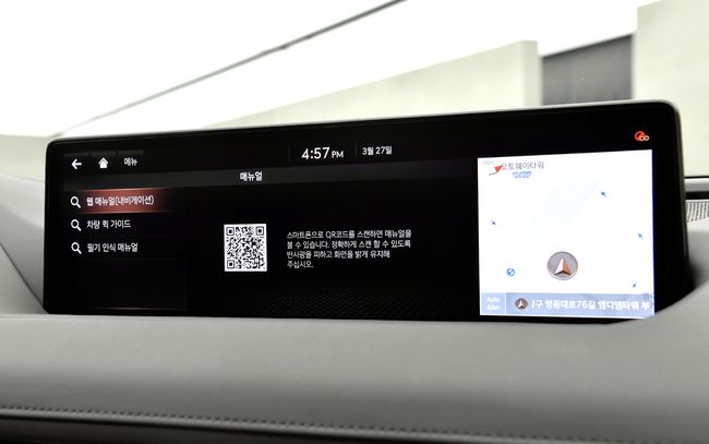 시계 영역에는 헤드업 디스플레이, 12.3인치 클러스터, 14.5인치 인포테인먼트 시스템 등 주행 중 필요한 정보를 표시하는 장치와 얇은 형태의 송풍구를 배치해 운전자가 주행에만 집중할 수 있는 환경을 만들었다.