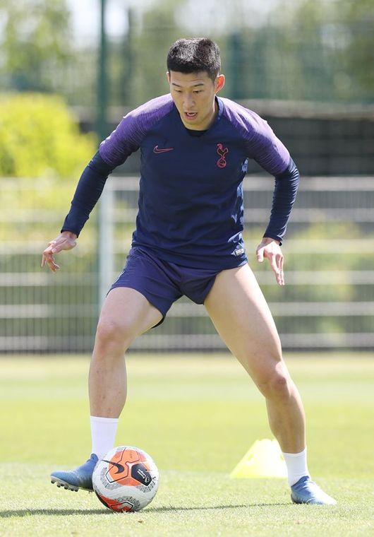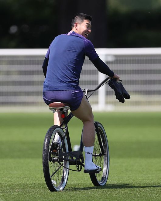 토트넘 페이스북 페이지는 21일 손흥민의 훈련복귀 사진을 공개했다. 까까머리의 손흥민은 훈련장에서 자전거를 타는 천진난만한 모습을 보였다. 손흥민은 드리블 훈련을 하는 등 평소와 다름 없는 훈련을 거쳤다.