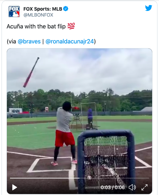 매체는 “우리는 실시간으로 보이는 배트 플립을 거의 잊어버렸다. 아쿠나가 달콤한 과거를 불러일으킨다”고 전했다. 개인 훈련 중인 아쿠나는 배팅볼을 친 후 왼손으로 배트를 허공으로 날려보냈다. 영상을 올린 폭스스포츠는 아쿠나의 배트 플립에 "100점"을 줬다.