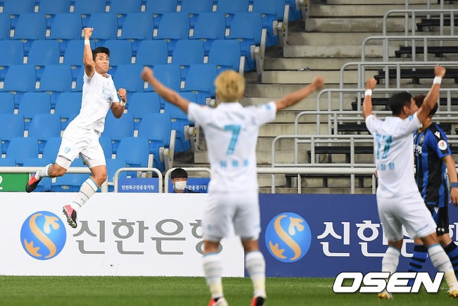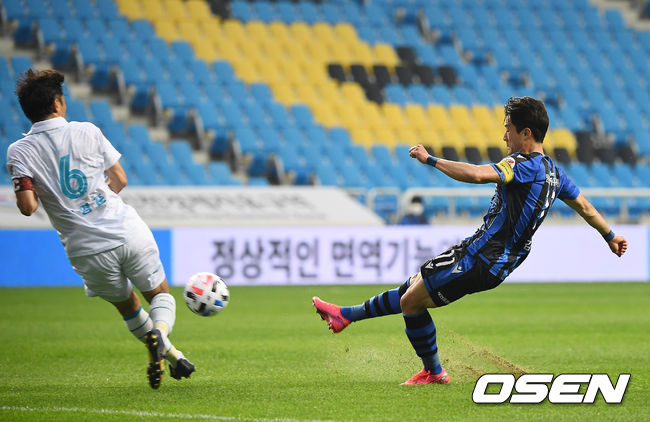 인천은 전반 24분 아크 서클 정면서 얻어낸 프리킥 찬스서 김성주의 왼발 슈팅이 수비 벽에 막혔다. 1분 뒤 만회골을 터트렸다. 김호남이 아크 서클 근처서 기가 막힌 오른발 감아차기 슈팅으로 포항의 골네트를 갈랐다.