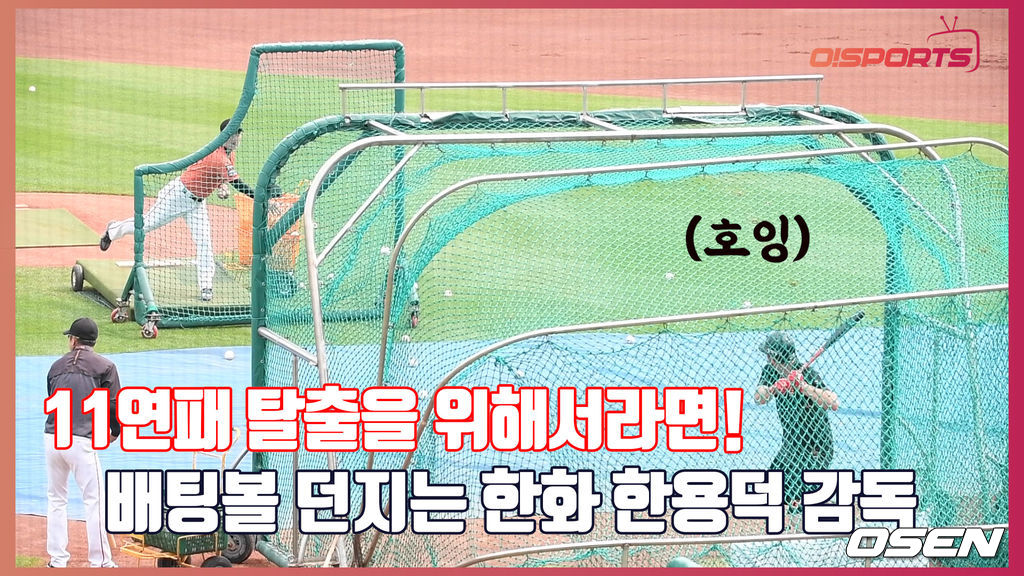 [O! SPORTS]’11연패 탈출 위해서라면!’ 배팅볼 던져주는 한화 한용덕 감독