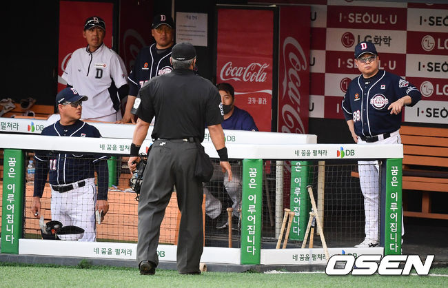 김태형 감독은 23일 인천 SK전에 앞서 브리핑에서 "미안했다. LG측 덕아웃을 보고 손을 들었는데 류중일 감독님은 안 보이더라. 안쪽에 계셨는지...유지현 수석만 보여서, 감독님 어디 계시냐 라고 손짓을 했다. 사실 나도 경황이 없었다. (오재원이 안 나와서) 뭐야 왜 안 나와 이러고 찾았다. (화장실 간 사실을) 그 부분을 처음부터 알았더라면, 심판에게 얘기했을텐데..."라고 설명했다.