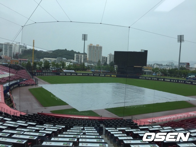구단은 전날 경기를 마치고 곧바로 방수포를 깔아 우천에 대비했다. 그러나 오전 일찍부터 야구장이 위치한 광주광역시 북구 임동은 비가 내리기 시작했고 오후 2시30분 현재 그치지 않고 있다.