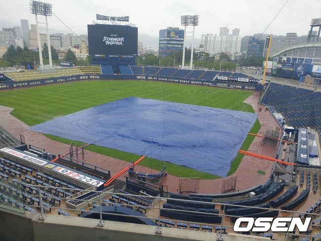 NC 구단은 전날 경기를 마치고 곧바로 방수포를 깔아 우천에 대비했다. 이날 오전부터 창원 NC파크에선 비가 내리기 시작했고 결국 우천 취소됐다. 이날 우천 취소된 경기는 10월 3일 더블헤더로 편성된다.