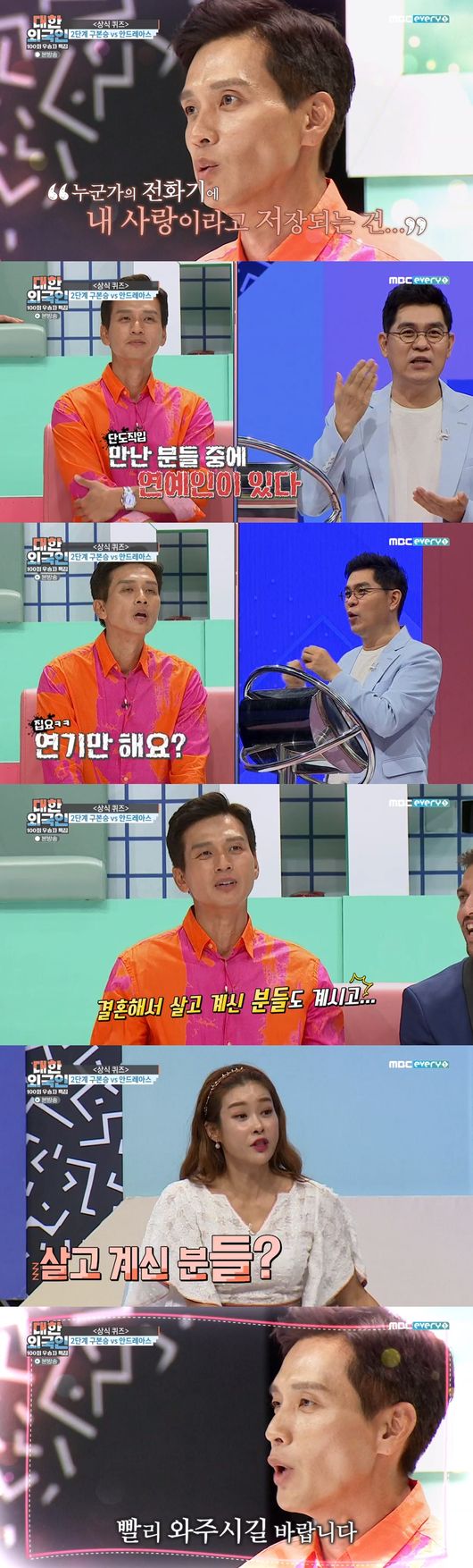 MC김용만은 "그동안 연애를 해 본 사람들 중 연예인이 있나"라며 분야까지 물어 눈길을 끌었다. 이에 구본승은 "있다. 연기하는 분이다"라고 말했다. 이어 김용만은 "연기도 하고 노래도 했나"라고 물었다. 이에 구본승은 "빨리 퀴즈로 가자"라며 "지금 결혼해서 살고 계신 분들도 있다"라고 말했다. 이에 현영은 "분들이냐. 혹시 모임이냐"라고 말해 웃음을 자아냈다.