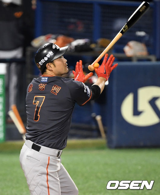 경기후 강경학은 "전 이닝 수비에 집중하지 못해 타구를 잘 처리하지 못했다. 공격에서 다시 집중해 잘 해보자라는 마음으로 타격에 임한 것이 홈런으로 이어졌다. 남은 경기 좋은 감을 이어가 팀에 보탬이 되도록 하겠다"고 다짐했다. /sunny@osen.co.kr