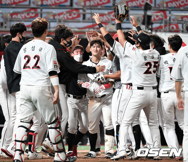 전날까지 상대전적에서 4승 6패로 밀렸던 KT는 공동 3위로 떨어진 지 하루 만에 배정대의 끝내기 안타로 단독 3위로 올라섰다.