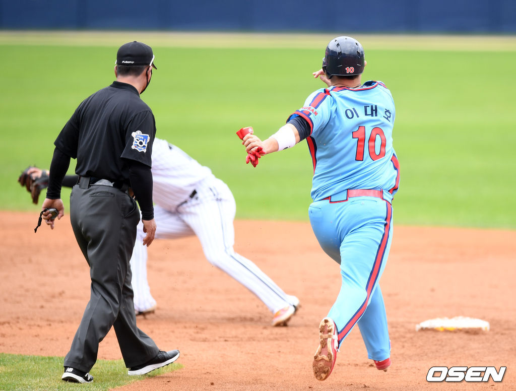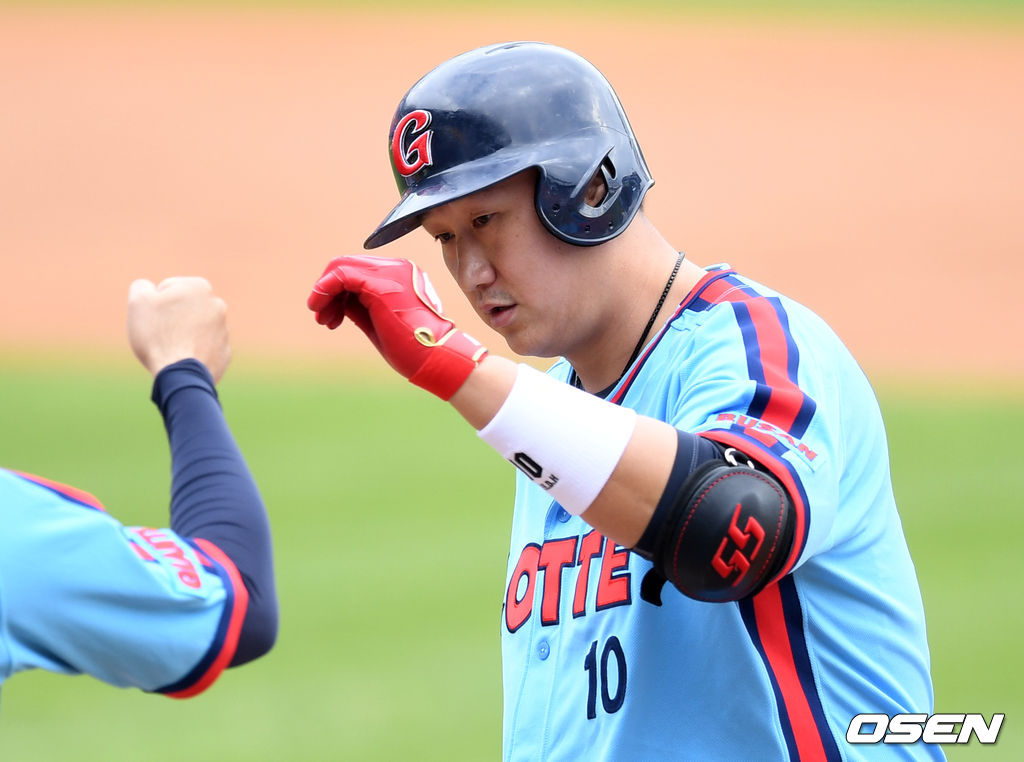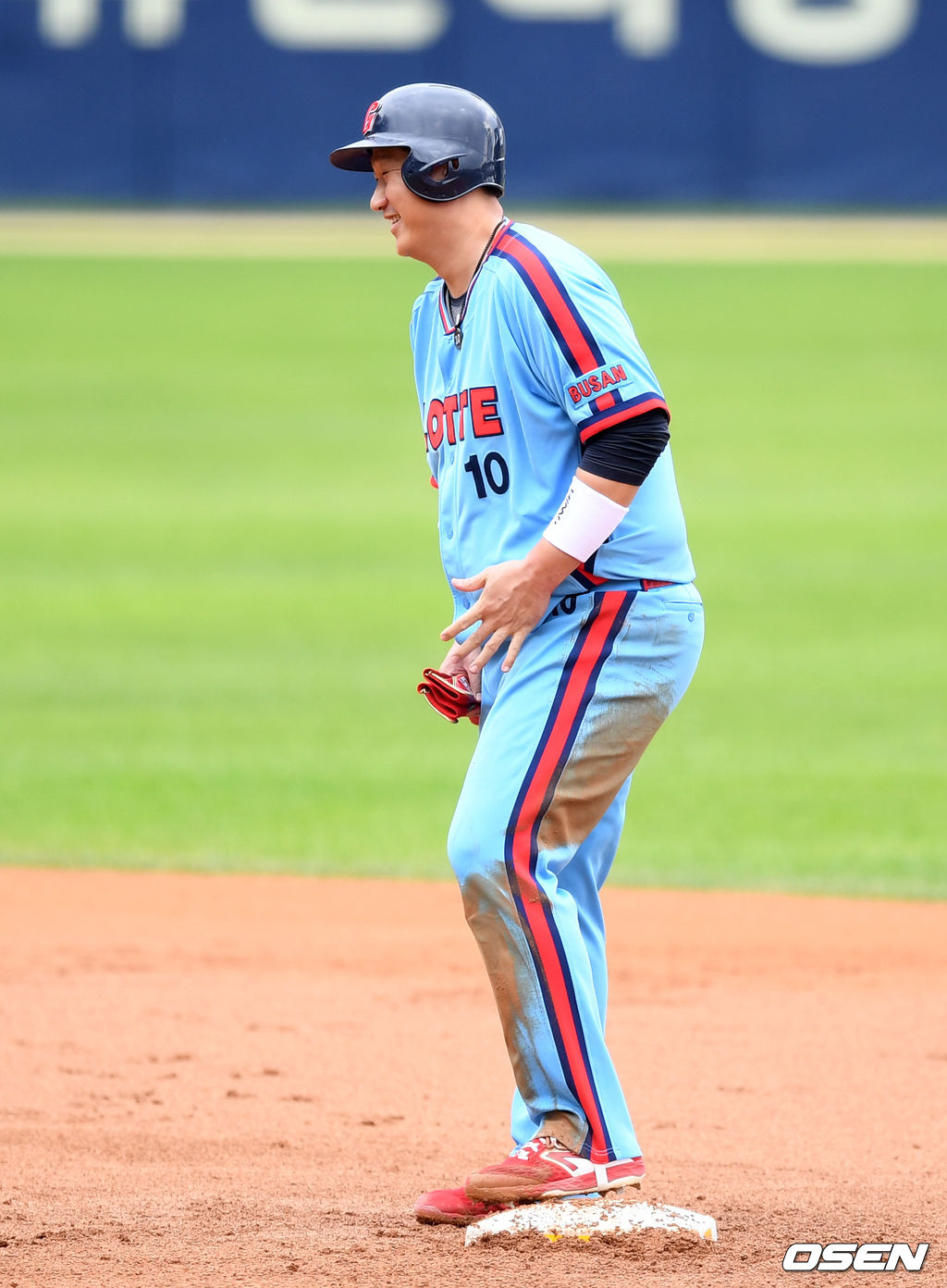 오랜만에 2루 훔친 이대호, 더그아웃 환호에 수줍은 미소