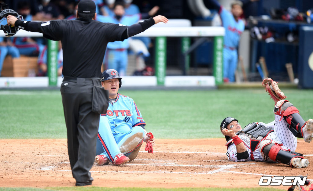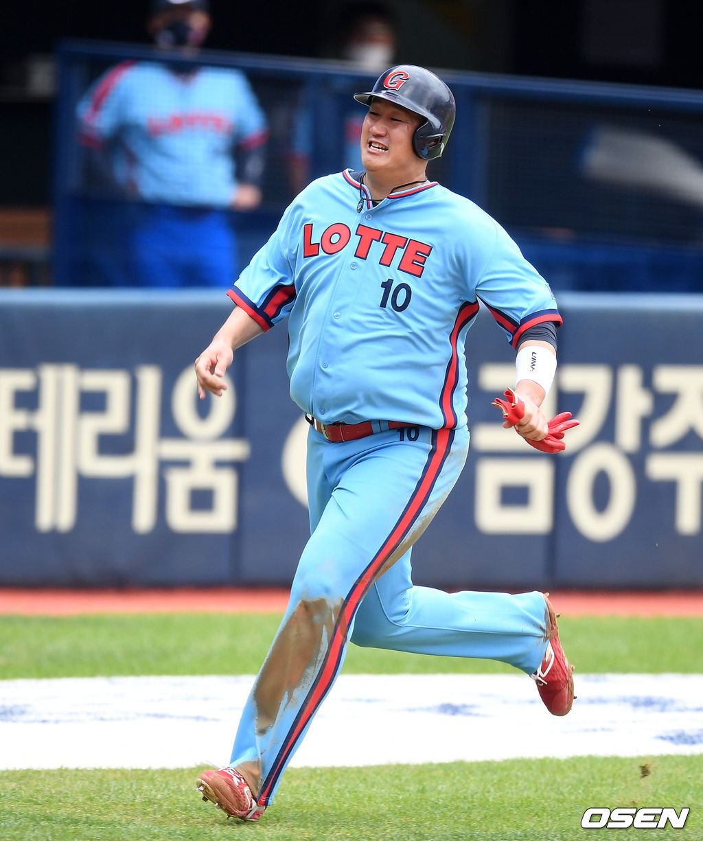 2루주자 이대호 정훈의 적시타 때 홈 향한 혼신의 베이스 러닝