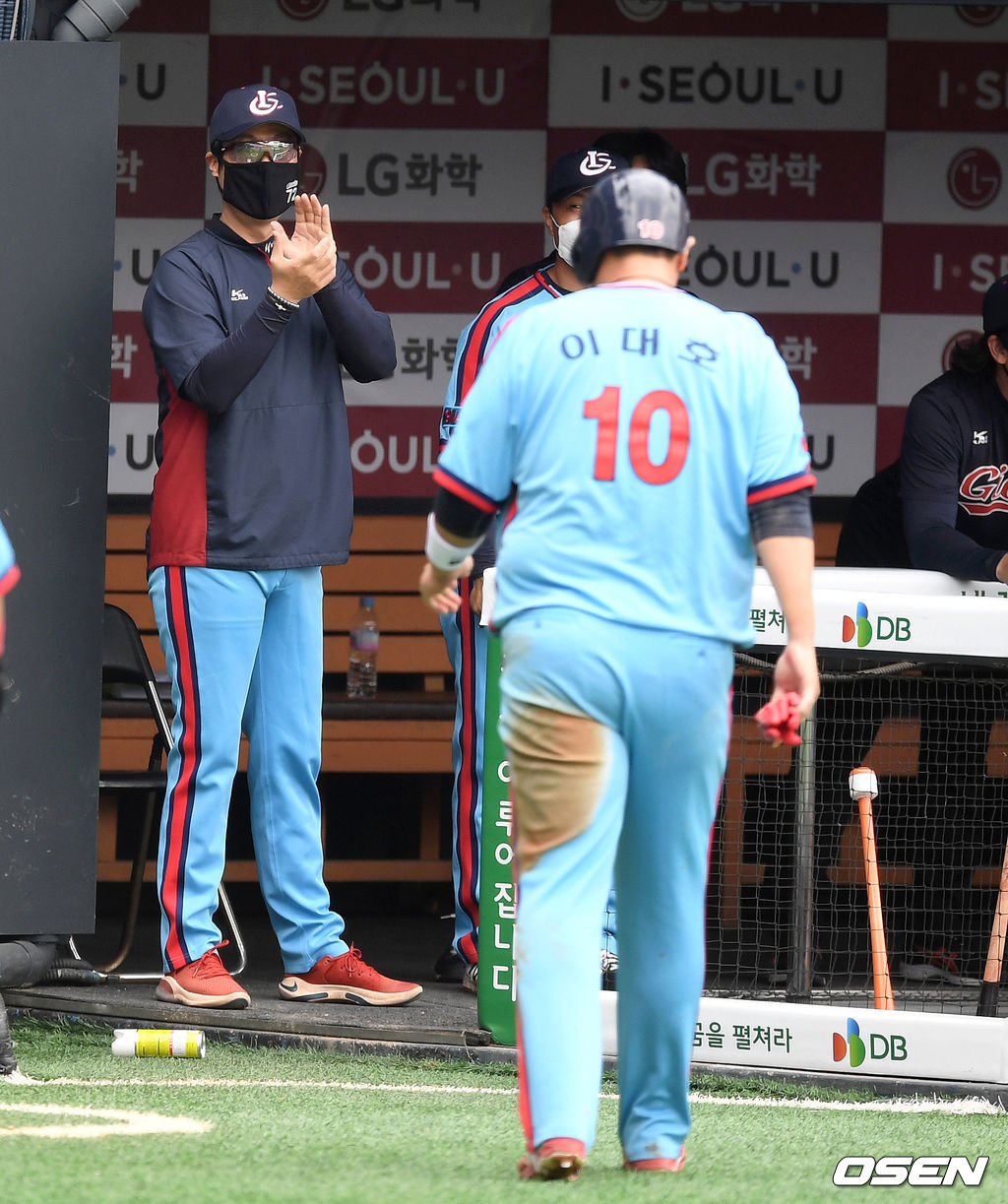 이대호의 허슬 플레이에 박수 보내는 허문회 감독