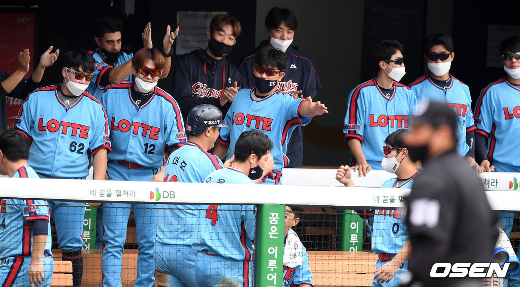 이대호의 헌신에 박수 보내는 롯데 더그아웃