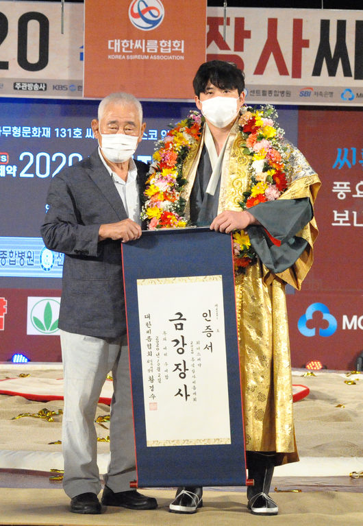 임태혁은 올해 두 번째 장사타이틀을 획득했고 2014년, 2015년, 2019년에 이어 추석대회만 네 번째이자 통산 15번째 장사에 등극했다. / 10bird@osen.co.kr