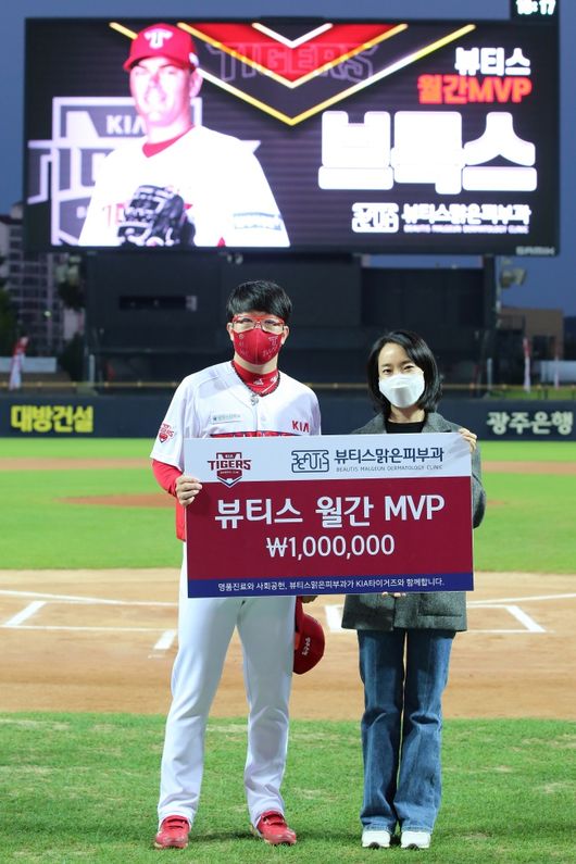 8일 광주 한화전에 앞서 시상식이 진행됐으며, 시상은 맑은피부과 신삼식 원장이 했다. 상금은 100만원이다. 미국에서 교통사고를 당한 가족의 간호를 위해 미국으로 출국한 브룩스를 대신해 주장 양현종이 상을 받았다.