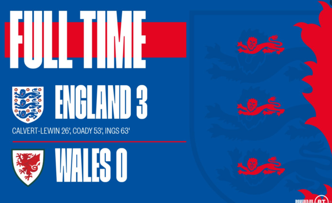 잉글랜드는 9일 오전 4시(한국시간) 영국 런던 웸블리 스타디움에서 열린 웨일스와 A매치 친선전서 신구 조화를 앞세워 3-0 승리를 거뒀다.