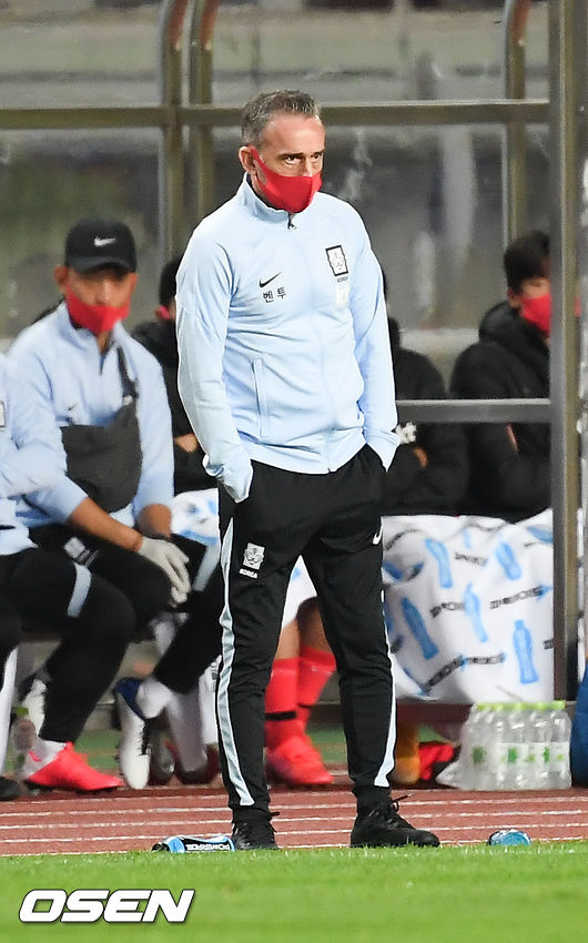 이날 한글날을 맞아 유니폼과 트레이닝복에 선수들 한글이름이 새겨져 의미를 더했다. 파울루 벤투 감독도 한글로 ‘벤투’라고 쓰여진 트레이닝복을 입고 선수들을 지휘했다. / dolyng@osen.co.kr