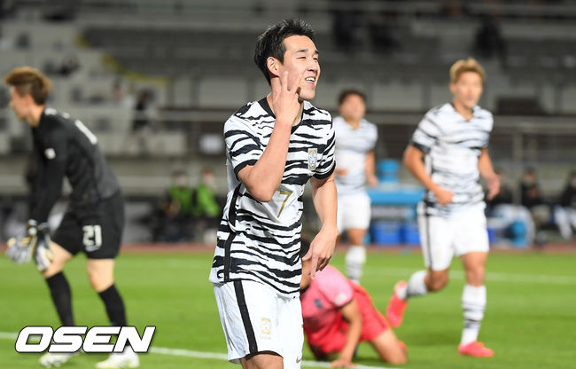 송민규는 이번 경기를 앞두고 김학범 감독의 첫 부름을 받으며 생애 처음으로 태극마크를 달았다. 수장의 기대가 고스란히 담긴 발탁이었다. 송민규는 올 시즌 K리그1 24경기에 출전해 10골 5도움을 기록한 핫한 신예 공격수다.