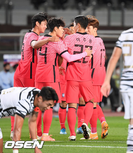 한편 벤투 감독이 이끄는 국가대표팀과 김학범 감독이 이끄는 올림픽대표팀은 지난 9일 같은 장소에서 맞붙어 2-2로 비겼다. 국가대표팀 이주용이 선제골을 넣으며 1-0으로 앞서갔으나 올림픽대표팀이 송민규의 동점골과 권경원의 자책골로 경기를 2-1로 뒤집었다. 그러나 국가대표팀은 후반 막판 이정협의 동점골로 패배를 면했다.