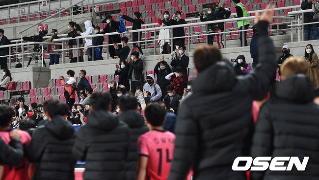 중대본 발표 후 축구협회는 곧바로 움직였다. 경기장을 깨끗하게 청소하고 관중들을 맞이할 준비를 마쳤다. 갑작스러운 일이었지만 축구에 목마른 팬들을 위한 움직임이었다. 축구협회 관계자는 "끝까지 약속을 지키고 경기를 지켜보신 팬들이 정말 고맙다. 많은 우려가 있었지만 성공적으로 마무리 했다. 사회적 거리두기가 완화됐다고 하지만 여전히 부담은 클 것이다. K리그에서 보여주신 모습들을 대표팀 경기서도 보여주셨다. 쌀쌀한 날씨에도 경기장을 찾아 주신 팬들이 정말 고맙다"고 말했다. / 10bird@osen.co.kr