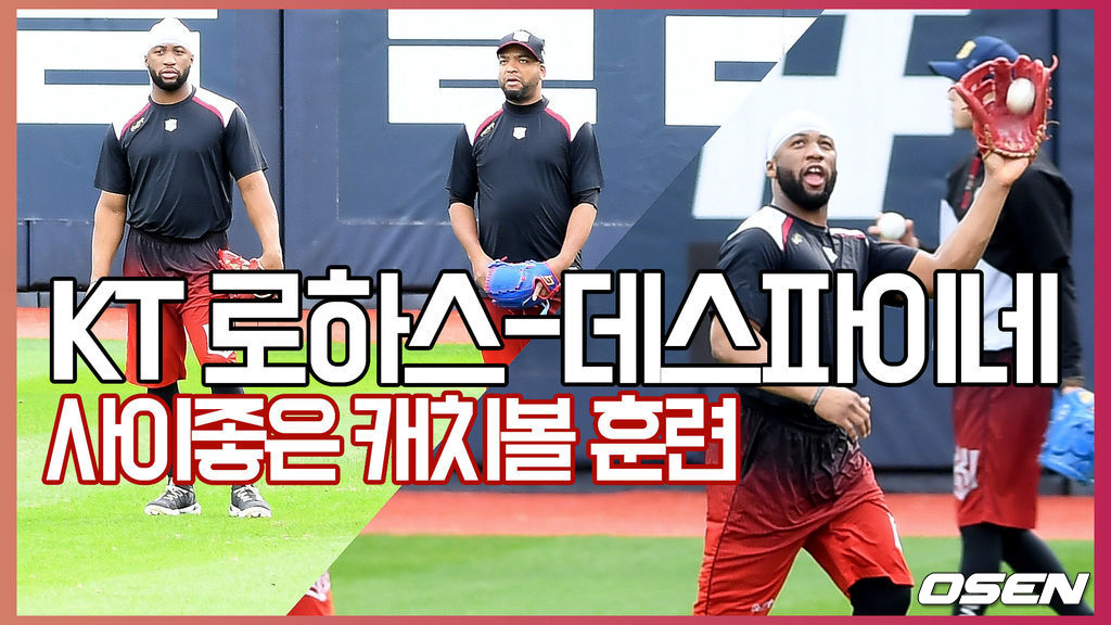 경기에 앞서 훈련 중인 KT 로하스와 데스파이네의 모습을 영상으로 담았다. /cej@osen.co.kr