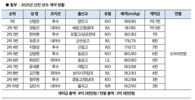 KT위즈가 2021년 신인 지명선수들과 입단 계약을 완료했다.