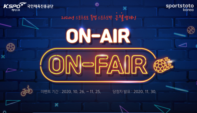 국민체육진흥공단이 발행하는 체육진흥투표권 스포츠토토의 수탁사업자 스포츠토토코리아가 불법스포츠도박 근절 캠페인의 일환인 ‘ON-AIR, ON-FAIR!’ 이벤트를 진행한다.