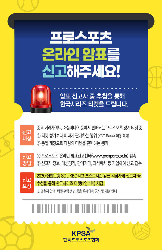 2020 KBO 포스트시즌 암표 신고자 중 추첨 통해 한국시리즈 티켓 증정