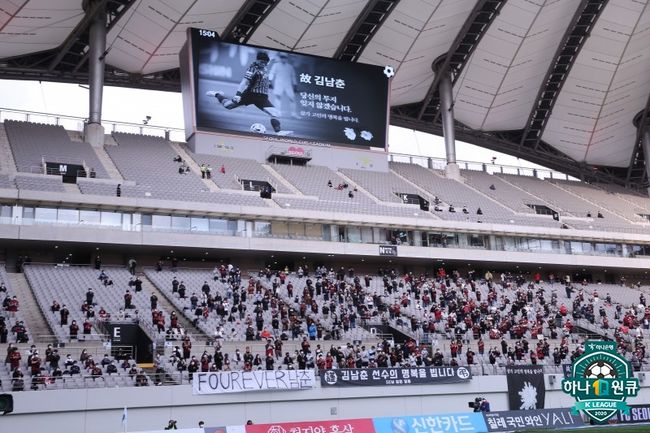 서울과 인천 선수단과 관중석은 전날 갑작스럽게 세상을 떠난 서울 수비수 김남춘의 사망을 기렸다. 서울은 추모 공간을 따로 마련해 ‘故 김남춘. 당신의 투지 잊지 않겠습니다. 삼가 고인의 명복을 빕니다’라고 추모했다. 국화꽃과 그리고 그리움을 담은 마지막 메시지와 선물도 남겼다. 관중석에도 ‘김남춘 선수의 명복을 빕니다’ 등의 추모 플래카드가 걸렸다.