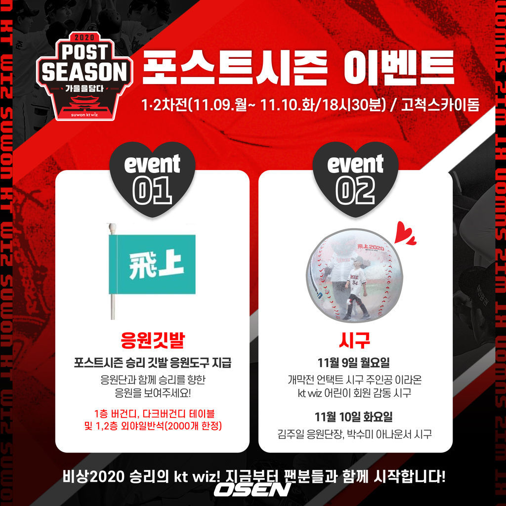 이번 플레이오프 1,2차전에 입장하는 홈팀 관중들에게는 선수단의 선전을 기원하며, 포스트시즌 엠블럼과 비상(飛上)이 새겨진 응원 깃발을 제공할 예정이다. /bellstop@osen.co.kr