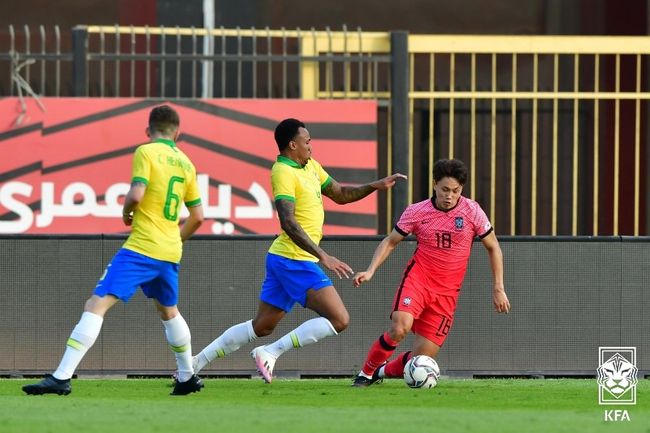 선제골 이후 한국은 안정적인 운영으로 브라질을 요리했다. 전반 21분 브라질이 위협적인 공격 기회를 잡았으나 송범근이 몸을 날려 막아냈다.