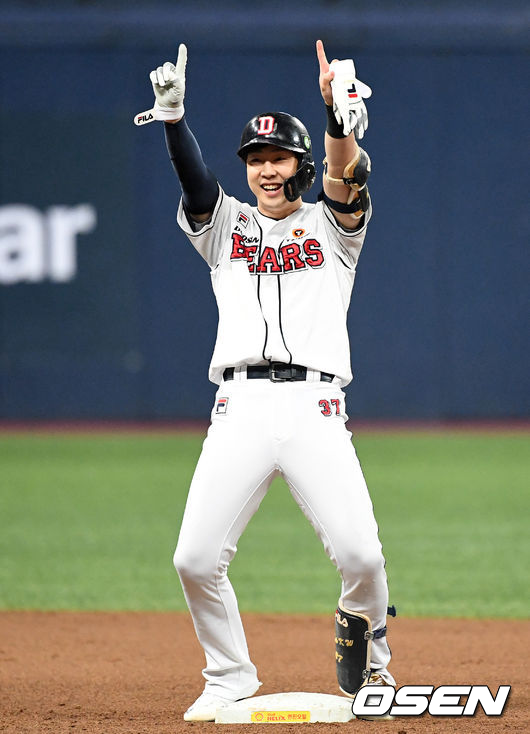 플레이오프 4차전에서 리드오프를 맡았던 박건우는 이날 경기에서도 1번 우익수로 선발 라인업에 이름을 올렸다. 박건우는 플레이오프에서 4경기 타율 1할8푼2리(11타수 2안타) 1도루를 기록했다. 타율은 낮았지만 1번타자로 나선 4차전에서 볼넷 2개를 골라내 멀티출루에 성공했다.