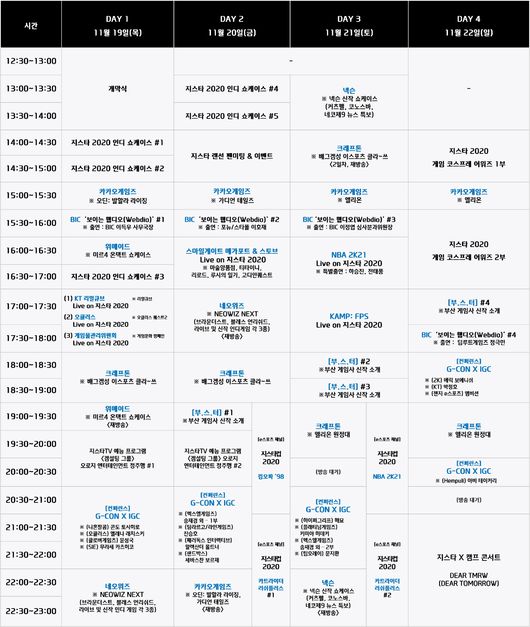 네오위즈는 19일 오후 10시와 20일 오후 5시에 모바일 전략 RPG ‘브라운더스트’와 오픈월드 액션 RPG ‘블레스 언리쉬드’ 및 신작 인디 게임 3종을 공개할 계획이다. 스마일게이트는 20일 오후 4시에 ‘마술양품점’ ‘티타이니’ ‘리로드’ '루시의 일기’ ‘고디안퀘스트’ 등 모바일게임을 다수 선보일 예정이다.