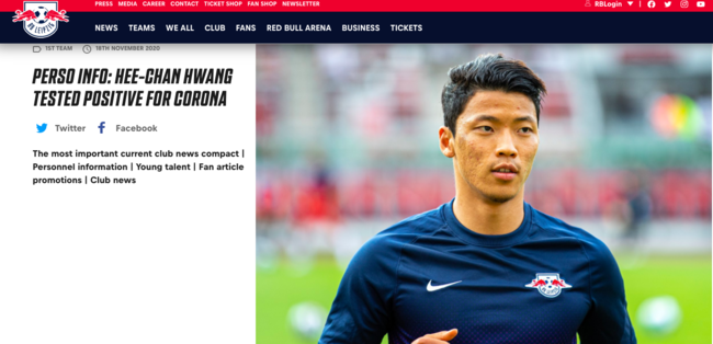 황희찬의 양성반응도 라이프치히 구단도 적잖은 충격을 받았다. 라이프치히는 18일 황희찬의 양성소식을 구단홈페이지 1면으로 다뤘다. 라이프치히는 “황희찬은 경기 후 RBL 트레이닝 센터 외곽의 집에서 바로 격리에 들어갔다. 라이프치히는 보건당국과 협력해 황희찬의 코로나 검사를 계속 실시하고 의료지원을 할 것”이라 밝혔다.