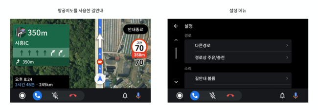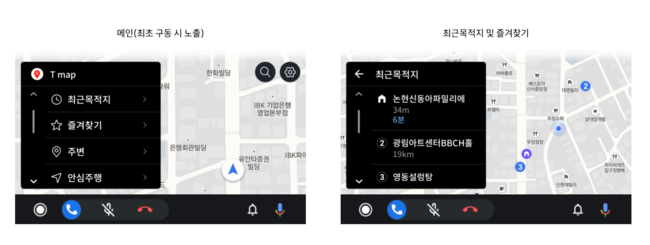 ‘T맵’ 안드로이드 오토는 HUD(Head up display), 계기판 클러스터를 통해 제공되며, 차량 디스플레이의 터치스크린 및 조그 핸들로 손쉬운 조작이 가능하다.