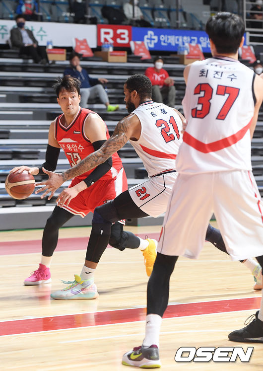 최진수(31, 현대모비스)가 현대모비스 유니폼을 입고 처음 고양에 왔다. 친정팀에는 트레이드 상대 이종현(26, 오리온)이 있었다.