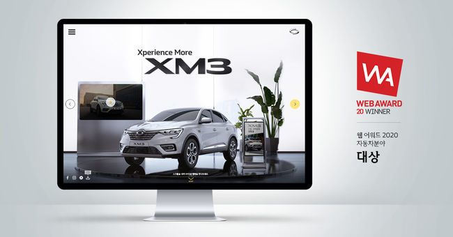 르노삼성자동차(대표이사 도미닉시뇨라)의 ‘XM3 마이크로 사이트’와 ‘MY 르노삼성 앱’이 한국인터넷전문가협회가 주최하는 ‘웹어워드 코리아 2020’와 ‘스마트앱어워드 2020’에서 분야별 대상을 수상했다.