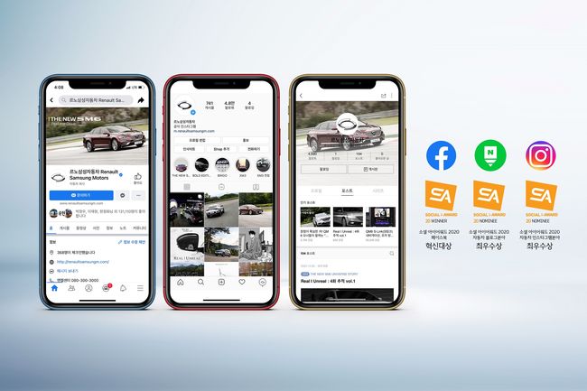 르노삼성자동차는 지난 9월 우수 소셜 인터넷서비스를 시상하는 ‘소셜아이어워드 2020’에서도 ‘르노삼성자동차 공식 페이스북’이 해당 분야 최고 상인 ‘페이스북 혁신대상’을 수상한 것을 비롯해, 르노삼성자동차와 르노 브랜드의 페이스북, 인스타그램, 블로그 등 소셜 채널 총 6개 부문에서 수상한 바 있다. 르노삼성은 이번 수상으로 웹, 앱, 소셜 3개 부문에서 상을 받았다.