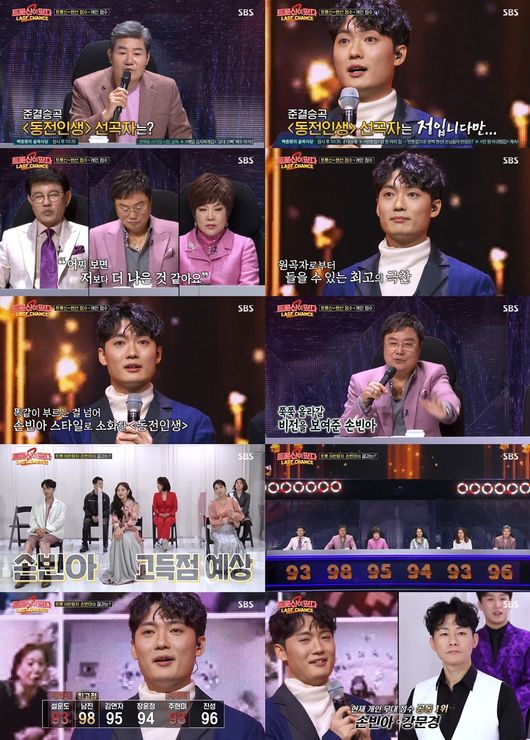 그중 트롯계의 어린왕자 손빈아는 준결승전 개인 미션곡으로 트롯신 진성의 '동전인생'을 선곡했다. 자신을 키워준 할머니가 랜선으로 지켜보는 가운데, 손빈아는 거침없이 자신의 고음을 뽐냈다. 노래를 들은 진성은 "어찌 보면 나보다 나은 것 같다"며 원곡자로서 할 수 있는 최고의 극찬을 퍼부었다. 남진 역시 "진성의 노래를 자신의 스타일로 소화했다"며 칭찬에 칭찬을 더했다.