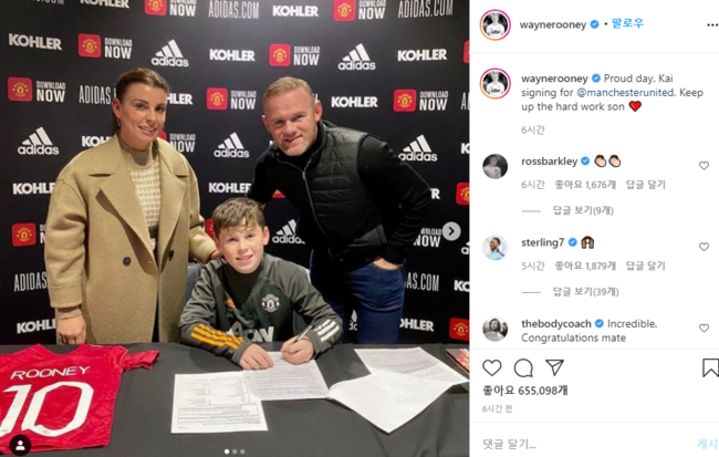 카이는 맨유서 아버지의 등번호 10번을 물려받게 됐다. 루니는 "우리 아들이 맨유에 입단했다"고 자랑스러워하면서 "아들, 노력을 멈춰서는 안 된다"라고 격려와 조언도 잊지 않았다.