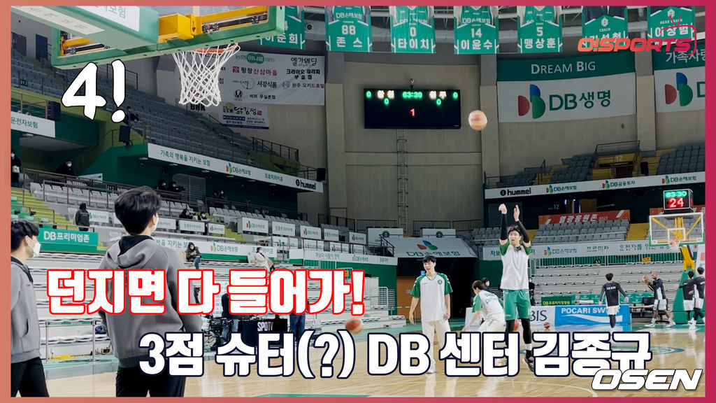 DB 센터 김종규(29)가 경기 전 훈련에서 물오른 3점슛 실력을 뽐냈다.