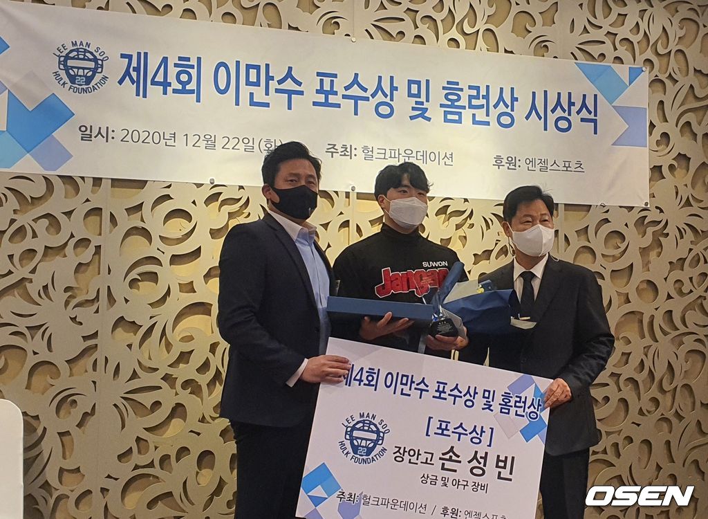 손성빈은 “영광스러운 자리왔고, 좋은 자리에 와서 기분이 좋다. 중학교 때부터 알게된 감독님께 잘 배운 것도 있다. 영광스러운 상을 받아 기쁘다. 이제 프로로 들어가는데, 앞으로 더 연습하고 갈고 닦아서 1군 무대에 설 수 있도록 하겠다”고 각오를 밝혔다.