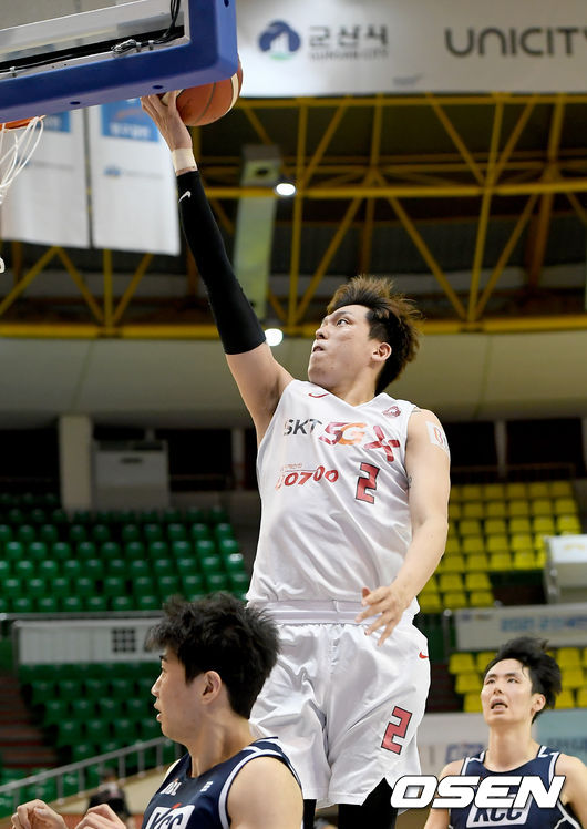 최준용은 복귀전에서 농구를 잘했다. 문경은 감독은 최준용에게 2라운드 MVP 송교창의 수비를 맡겼다. SK는 세 명의 가드를 동시에 쓰고, 최준용을 4번으로 올린 스몰라인업을 가동했다. 물이 오른 송교창은 쉽지 않은 상대였다. 송교창은 1쿼터부터 레이업슛과 3점슛으로 가볍게 5점을 뽑았다. 최준용은 1쿼터 중반 리버스 레이업슛을 성공시켜 복귀 후 첫 득점을 올렸다.