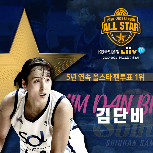 김단비(30, 신한은행)가 5년 연속 올스타 팬 투표 1위에 올랐다.