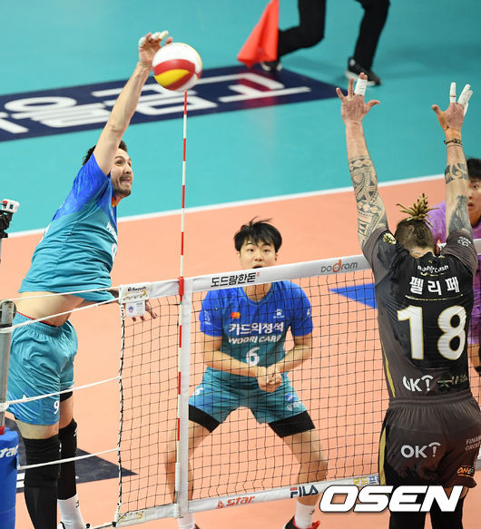 알렉스가 펄펄 날았다. 이날 알렉스는 블로킹 3득점,서브 2득점 포함 총 20득점을 기록하면서 공격을 이끌었다. 공격성공률 83.33%에 달했다. 토종 주포 나경복 역시 18득점, 공격성공률 58.33%로 위력을 과시했다.