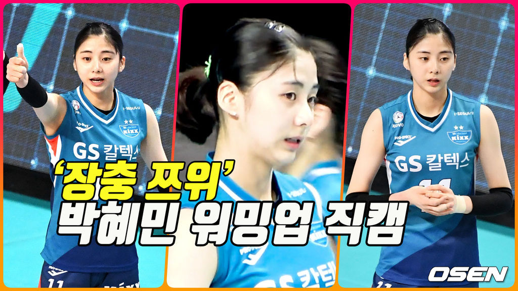 트와이스 멤버 쯔위를 닮은 외모로 ‘장충 쯔위’라는 별명을 지닌 GS 박혜민이 경기에 앞서 워밍업을 하고 있다.