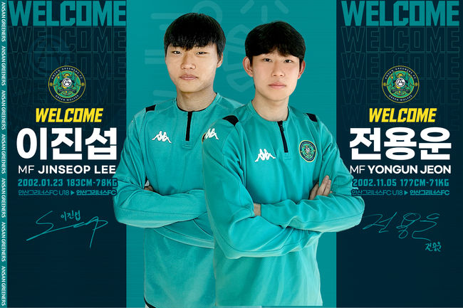 안산그리너스FC(구단주 윤화섭)가 산하 유스팀에서 프로로 직행하는 이진섭(MF, 18), 전용운(MF, 18)과 프로 계약을 마무리했다.
