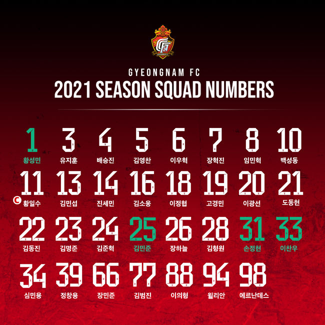경남FC가 27일 2021시즌 등번호를 최종 확정했다.