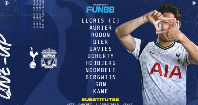 중원은 맷 도허티-피에로 호이비에르-탕귀 은돔벨레-세르주 오리에가 형성했다. 스리백은 벤 데이비스-조 로든-에릭 다이어가 구축했다. 선발 골키퍼는 위고 요리스.