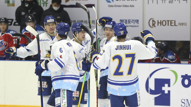 안양 한라가 대명 킬러웨일즈를 완파하고 국내 대회 11연승 행진을 이어갔다.