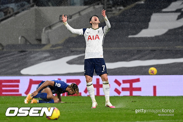 최근 3경기서 단 1골에 그친 토트넘은 2012년 이후 첫 3연패를 당하며 우승 경쟁에서 완전히 밀려났다. 특히 에이스 손흥민이 이날 후반 42분이 돼서야 페널티 박스 안에서 공을 잡는 등 공격 작업이 형편없었다.